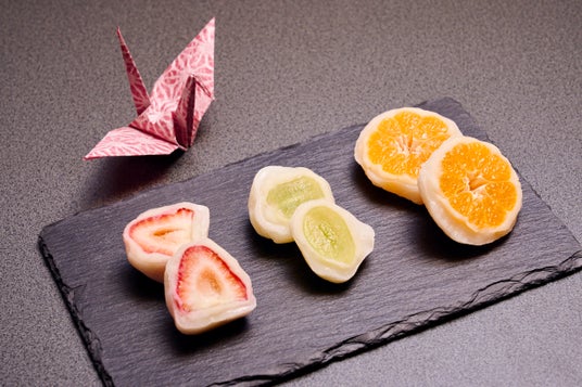 いちご、シャインマスカット、みかんを白あんで包んだフルーツ大福