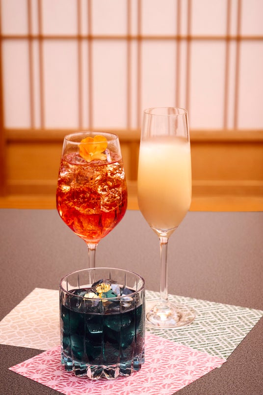 強運カラーをイメージしたオリジナルカクテルと冷えた甘酒を使ったモクテルをご用意いたしました。