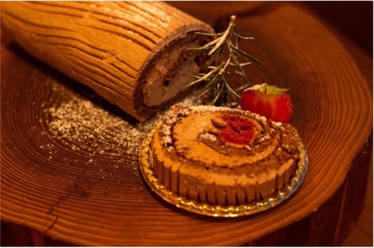 ショコラのクリームと甘酸っぱいフランボワーズが特徴の期間限定ケーキです。フランス語でクリスマスの丸太を意味する「ブッシュ・ド・ノエル」。クリスマスツリーをイメージしたデコレーションとポインセチアをイメージした赤い果実=フランボワーズで見た目も可愛く、ホリデーシーズンの気分をお楽しみいただけます。