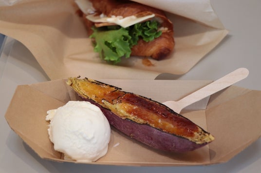クロワッサンサンドウィッチとサツマイモブリュレとのセット