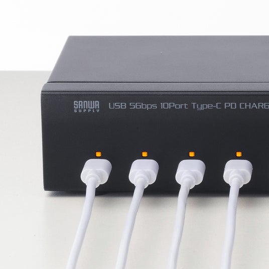 USB-5TCPS10は10ポートを搭載し、まとめて10台のタブレットを同時に充電・同期ができます。