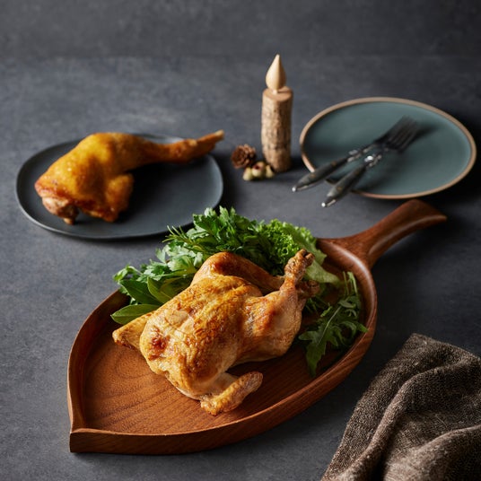 福島県産の伊達鶏を使ったクリスマスローストチキン。ほどよい脂と臭みのない柔らかさが魅力の味わい深い伊達鶏を、旨みたっぷりに焼き上げました。少人数でも食べやすいサイズに切り分けてご提供いたします。塩のみでシンプルに焼き上げた、千葉県産の水郷赤鶏を使用した「水郷赤鶏もも焼き」(1,836円)もおすすめ。どちらも鶏本来の風味を最大限に引き出した、鳥専門店ならではの逸品です。