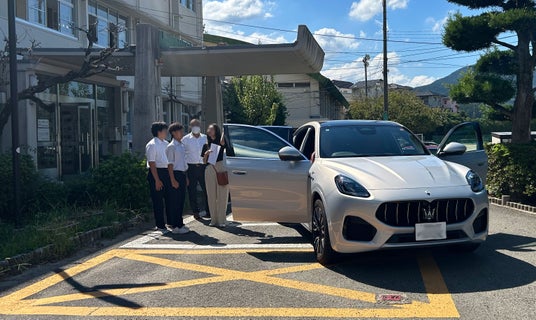 貴重な体験談を聞き、さらにフェラーリに乗車する機会も得た中学生は、目をキラキラと輝かせていました。