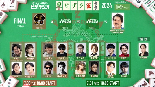 ピザラ雀とは・・オーイシ×加藤のピザラジオ(ピザラジ)が毎年夏に開催している大人気麻雀生放送。今回はピザラジの姉妹番組であるatagi×ゆゆうたのおとなりラジオ(おとラジ)が参戦!