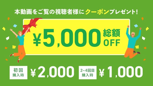 今回の協賛を記念した、お得なキャンペーンも実施中。キャンペーンページからの新規購入で初回購入時2,000円、以降2~4回目購入毎に1,000円OFFの総額5,000円OFFで購入いただだくことができます。