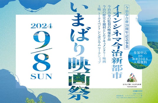 9月8日(日)、今治市合併20周年記念事業として「いまばり映画祭」をイオンシネマ今治新都市で開催します。今治にゆかりのある監督の映像作品や、今治の歴史を題材としたドキュメンタリー映画、昭和レトロを再現したこだわりのサスペンスなど4作品を上映。トークイベント、シンポジウム、ワークショップなどの多彩な企画も満載です。