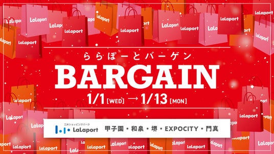 三井不動産商業マネジメント株式会社(所在:東京都中央区 代表取締役社長 大林修)が運営する関西の三井ショッピングパーク ららぽーと(甲子園・和泉・堺・EXPOCITY・門真)では、2025年1月1日(元日)~1月13日(月・祝)の期間、冬の大バーゲン『ららぽーとバーゲン』を開催いたします。
