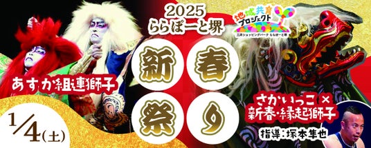 さらに、2025年1月4日(土)は、堺で伝統舞踊にふれよう!をテーマに、日本を代表する和太鼓集団「舞太鼓あすか組」が披露する歌舞伎舞踊連獅子と、地域の子どもによる獅子舞いをお楽しみいただけます!