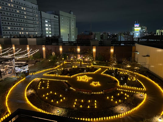 イルミネーションやキャンドルが屋上庭園にて美しく輝きます。