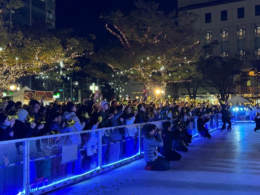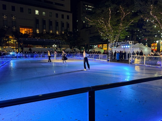 千葉市中央公園に設置されたスケートリンクとイルミネーションが幻想的な雰囲気を作り出します。