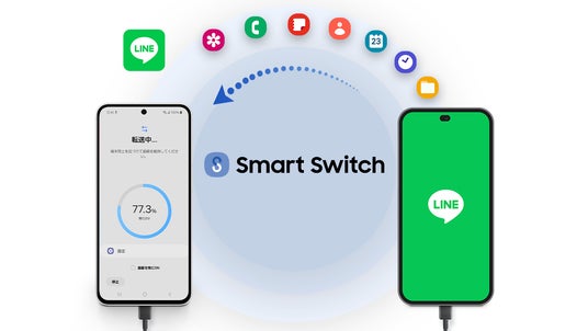 iOSからでもGalaxyのデータ移行アプリ「Smart Switch※1」を使えば、かんたんに機種変更時のデータ移行ができます。LINEのトーク履歴も全期間の移行が「Smart Switch」で可能※2になりました。 買ったその日から、今まで通りの使い心地でご使用いただけます。
