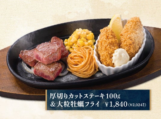 ・[おすすめ]厚切りカットステーキ100g&大粒牡蠣フラ1,840円(税込2.024円)