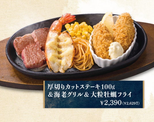 ・[中]厚切りカットステーキ100g&海老グリル&大粒牡蠣フライ2,390円(税込2,629円)