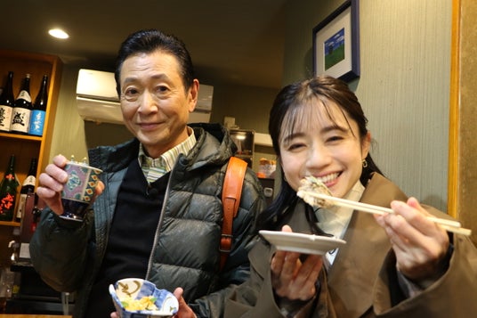 昼から飲める!地元民が集まる立ち飲み【ゆう翔】で三田村が頼んだのは高知県産の「美丈夫」。斉藤が「名前が気になる」と注文したのは『ハッピーバランスポテサラ』。なんと中に入っていたのはアレ!さらに、当時4歳だったという店主から1970年の万博の思い出話も。