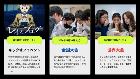 第1ステージでは、ファクトチェックゲーム「レイのブログ」に挑戦し、JFC編集長の古田大輔氏による特別講演が行われます。第2ステージは日本大会で、リアルタイムのチーム対抗戦を通じて複数の検証課題に挑戦します。そして第3ステージでは、各国の代表チームが世界大会でリアルタイム対決を繰り広げます。大会の様子はYouTubeなどの配信サービスを通じて世界中に発信され、広く報道関係者や一般市民にもその模様を届ける予定です。