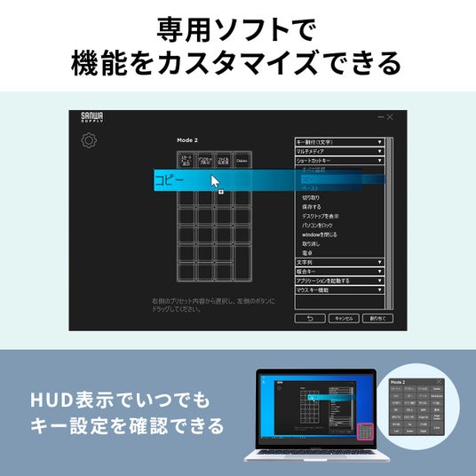 様々なショートカットを割り当てることで、CADやイラストソフトなどでの作業を快適にできるプログラマブルテンキー