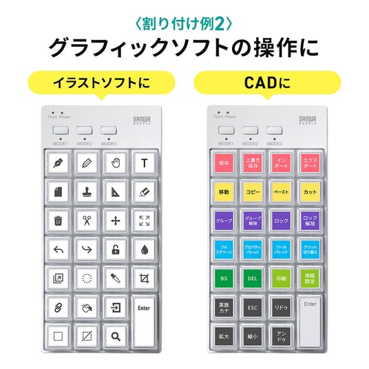サンワサプライ株式会社(本社:岡山市北区田町1-10-1、 代表取締役社長 山田 和範)が運営している直販サイト『サンワダイレクト』では、様々なショートカットを割り当てることで、CADやイラストソフトなどでの作業を快適にできるプログラマブルテンキー「400-NT009」と「400-NT010」を9月4日に発売しました。