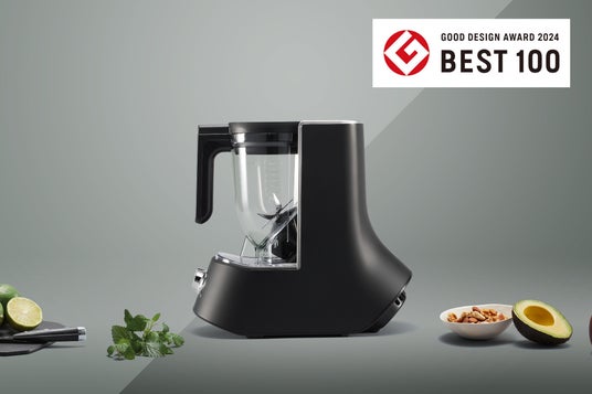 現代のフードロスの課題に目を向け、家庭におけるフードウェイスト削減も念頭において開発されたミキサーの新しいかたち。高さを押さえた安定感と独自の姿は、切削性を高めるべく斜めに設けられたカッターや、水の乱流をもたらす斜めのモーターより導き出された理のあるフォルムであり、意欲的な提案が製品全体の印象的な姿に結実している。自社の強みを生かしながら製品の幅を拡げるチャレンジに向かった、企業の果敢な取り組みの好例としても高い評価が集まった。