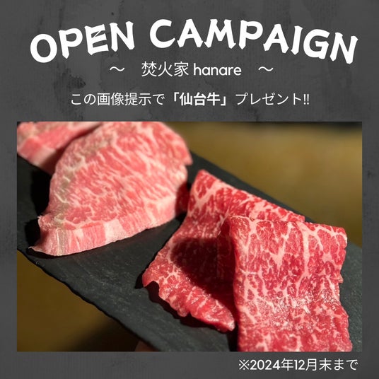 11月20 日(水)、渋谷桜丘に「焚火家 hanare」がグランドオープン!オープンから12月末まで「仙台牛祭り」開催!ご来店頂いたグループ毎に仙台牛をプレゼント!