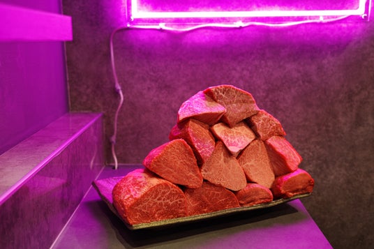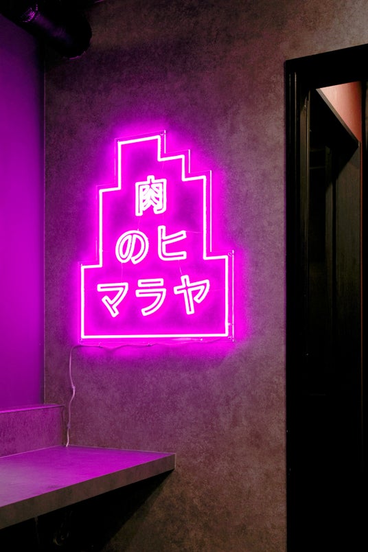 焚火のようにゆらめく「肉のヒマラヤ」のLEDネオンサイン