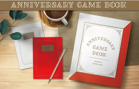2人の想い出で遊ぶ「Aniversary Game Book」1年の思い出を振り返りながら遊ぶ2人専用のボードゲームです。お互いの価値観や好きなことを再認識できます。 1年に1度だけ遊ベるボードゲームのため、2人にとって大切な日に遊ぶことで素敵な時間が過ごせるでしょう。