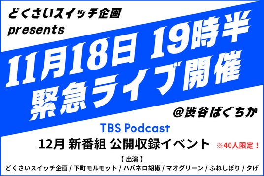 『TBSラジオ×どくさいスイッチ企画 Podacst新番組 公開収録イベント』