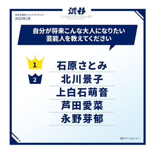 【イマドキ高校生の最新!成人に関する調査】将来こんな大人になりたい芸能人TOP10を発表!今月のネクストトレンド「平成女児グッズ」とは…?高校生の最新トレンド2025年冬!渋谷トレンドリサーチ