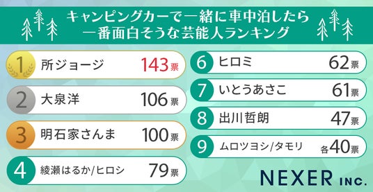 株式会社NEXER・キャンピングカーで一緒に車中泊してみたい芸能人に関する調査
