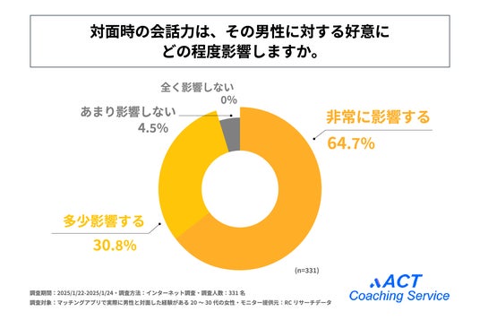 20代~30代の女性の95%以上が、対面時の会話力はその男性に対する好意に少なからず影響すると考えている