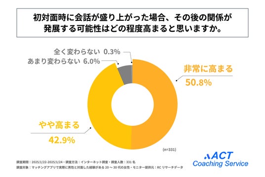20代~30代の女性の93%以上が、初対面時に会話が盛り上がった場合、その後の関係が発展する可能性が高まると感じている