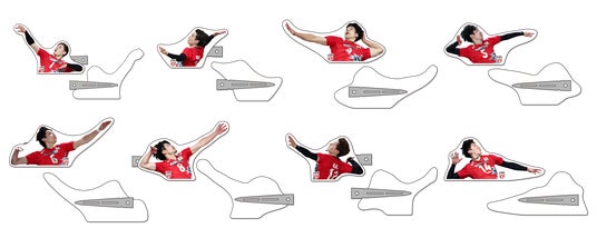 その他にも、応援うちわをイメージした「うちわ型アクリルキーホルダー(C賞)」や「前髪クリップ(D賞)」といったユニークなアイテムも取り揃えております。国際大会の写真を使用したオリジナルアイテムをお見逃しなく!