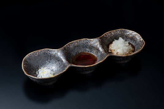 焼肉の味を決める「タレ」も、こだわりの塩に野菜やハーブなどを調合して作ったオリジナルです。レモン塩や大根おろしを加えたポン酢など3種類からお好みのものをつけていただけます。