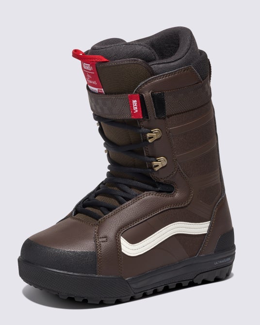 ベニー・アーバンのホワイト&ブラックのブーツはレトロなVANSロゴを採用し、スケートにインスパイアされたデザインに。ジル・パーキンスはブラウン&ホワイトをミックスした色合いと、女性の足に合うようにアップデートされたライナーを完備しています。