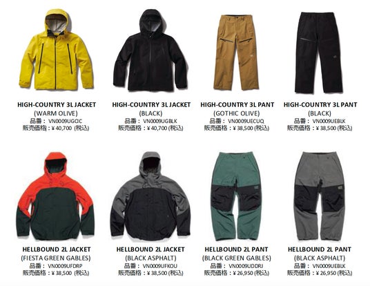 「HIGH-COUNTRY 3L OUTERWEAR」コレクションは、スノーチームメンバーによって世界中でテストされた、軽量で防水性に優れたポリエステル100%の3レイヤージャケットとパンツを展開。