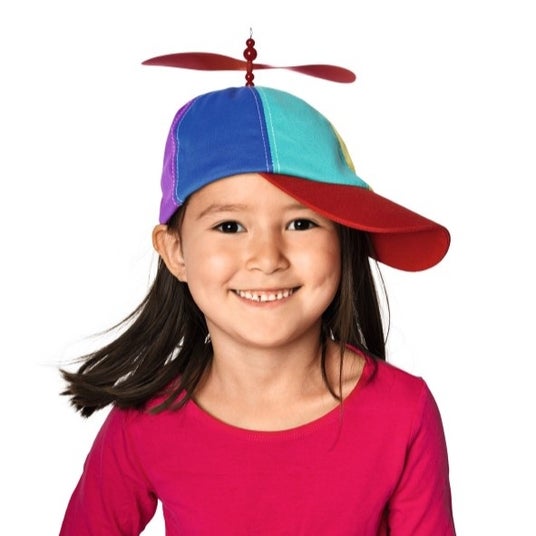 通称「プロペラキャップ」。走ったり、風を受けると、プロペラが回ります。店頭でスタッフが着用するドレスアップ(仮装)グッズの中で、着用率No.1です。