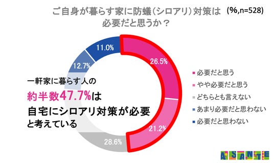 - 自身が暮らす家屋にシロアリ対策が必要だと思っている人は約半数の47.7%