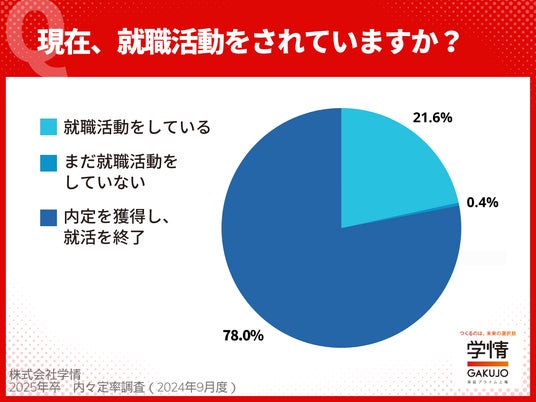 (3)就職活動中の学生は「21.6%」。約8割の学生が、内々定を獲得し、就活を終了