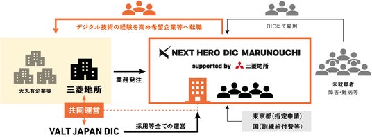 障がい者特化型DXプラットフォーム「NEXT HERO」事業を手掛けるVALT JAPAN株式会社(東京都千代田区、代表取締役:小野 貴也、以下VALT JAPAN)と三菱地所株式会社(東京都千代田区、代表執行役 執行役社長:中島 篤、以下三菱地所)はこのほど、東京都千代田区新大手町ビルに「デジタルイノベーションセンター丸の内supported by 三菱地所」(以下、DIC丸の内)を開設いたしました。本センターは、千代田区唯一の障がい者就労継続支援A型事業所※1となります。またデジタル業務に特化した就労継続支援A型事業所としては、23区で初となります。