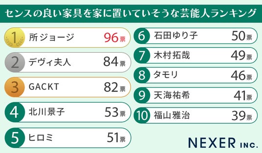 株式会社NEXER・センスの良い家具を家に置いていそうな芸能人に関する調査