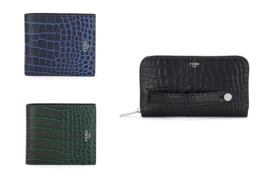 左上から時計回り:二つ折り財布¥473,000(アリゲーターレザー製/H9.6 W10.5 D1.5cm)、長財布¥ 1,001,000(アリゲーターレザー製/H12.5 W21 D2.5cm)、二つ折り財布¥473,000(アリゲーターレザー製/H9.6 W10.5 D1.5cm)※税込み価格