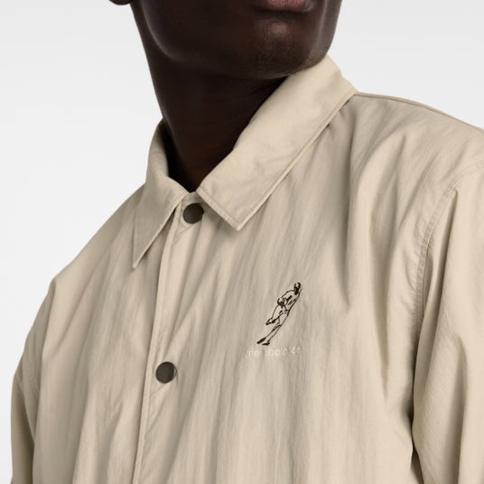 ウーブンナイロンジャケットは、ダグアウトの定番アイテムからインスピレーションを得た万能ジャケットで、軽量のナイロン製、メッシュの裏地、前身頃のフルスナップ開閉が特徴です。