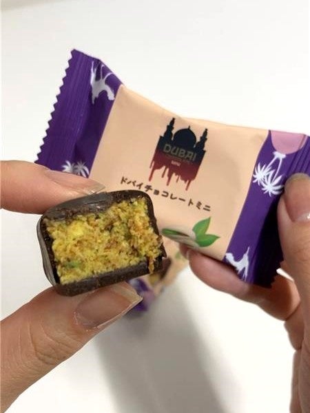 「ドバイチョコ」は、チョコレートの中にピスタチオのペーストと中東の乾麺「カダイフ」が入っており、ザクザクとした新食感が話題となっているドバイ発のチョコレート菓子です。