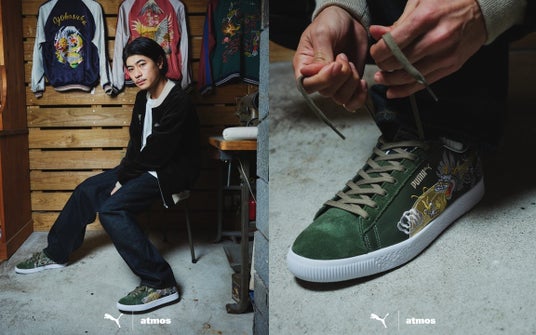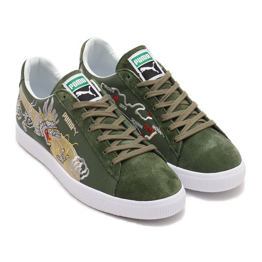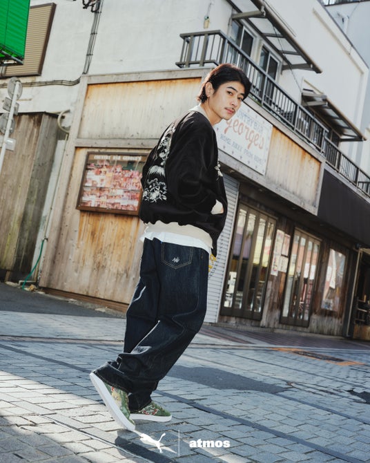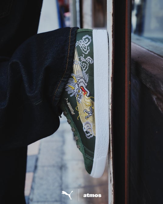 横須賀に駐留していた米軍兵が土産品として持ち帰り、日本発の“スーベニアジャケット”として全世界で知られているスカジャン。その象徴的なデザインをPUMAの定番モデル「PUMA SUEDE MIJ(プーマ スウェード MIJ)」に落とし込んだSKAJANシリーズは、2021年よりatmosが展開する別注シリーズです。