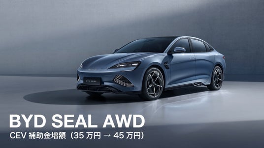 BYD Auto Japan株式会社(本社:神奈川県横浜市、代表取締役社長:東福寺 厚樹、略称:BAJ)が、国内で販売するフラッグシップモデル、「BYD SEAL」の四輪駆動仕様「BYD SEAL AWD」に適用されるCEV補助金が、従来の35万円から45万円※2に増額されました。