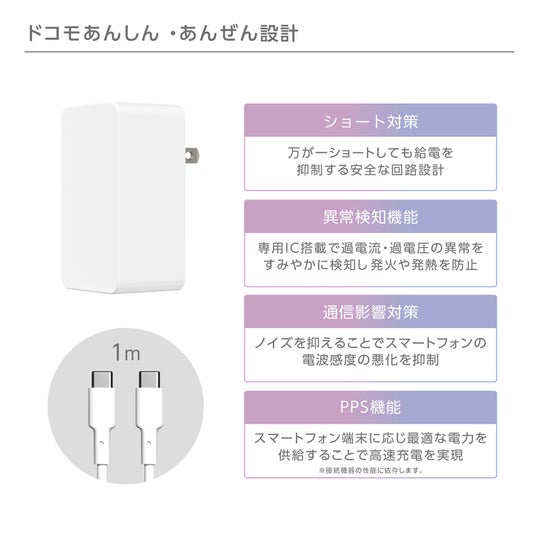 ■PPS搭載:スマートフォン端末に応じ、最適な電力を供給することで高速充電を実現。※接続機器の性能に依存します。