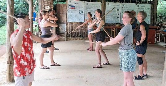 2日目(フィリピン伝統文化体験)1.フィリピン伝統文化体験(料理体験 / アーニス体操(棒術)/伝統ゲーム/工芸品作り/ココナッツツリークライミング/伝統ダンス)