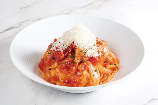みずみずしい玉ねぎと旨みを十分に引き出したイベリコベーコンは完熟トマトソースと相性抜群。