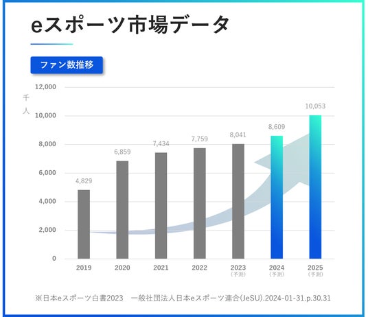 一般的にインターネット回線は、同時に利用している人が増えると、通信速度の低下と遅延(タイムラグ)が発生します。なかでもオンラインでeスポーツをプレイする際には遅延が少ない高品質な通信回線が必要と言われています。ctcは、独自の通信インフラを保有し、24時間365日の運用保守体制を確立する中で、2019年に自社回線を用いた中部地域初の常設eスポーツスタジアムを開設し、数々のeスポーツのイベントを主催・運営してきました。今後さらに注目が集まるeスポーツ(図1参照)において、若手プレイヤーの育成だけでなくだれもがeスポーツを通じて“つながる”ことができる場を創出することで、当社のパーパスとして掲げる「新しい“いつも”」を提供し続けたいという思いから、本リーグを立ち上げます。