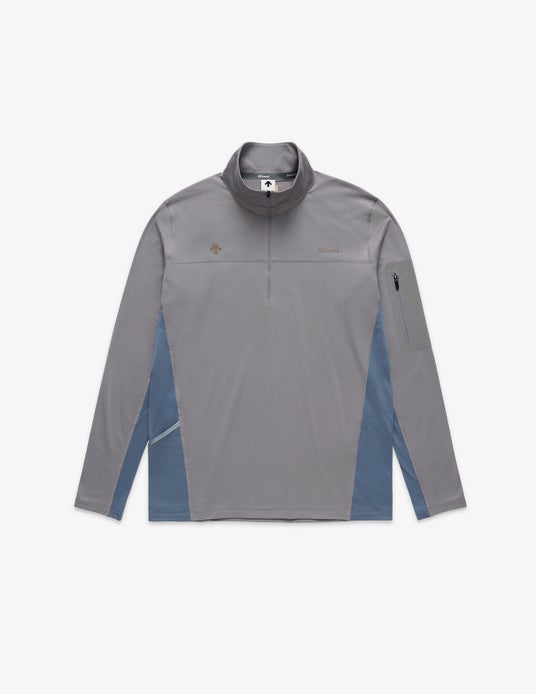 柔らかなライトストームブルーとライトグレーのカラーパレットを中心に構成されたコレクションは、寒い季節のレイヤリングを最適化するようにラインナップ。ベースレイヤーとなるインナーは、通気性に優れたメッシュのアスレチックTシャツと1/4ジップのマイクロフリース・セーターを展開。