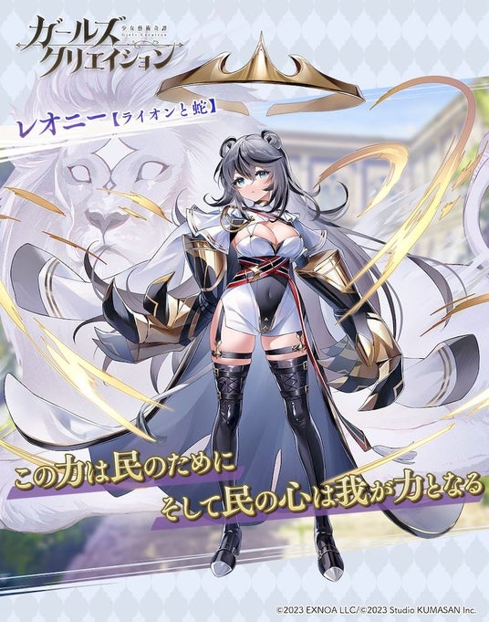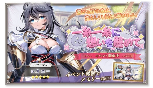 合同会社EXNOA(本社:東京都港区、CEO:村中 悠介、URL:https://games.dmm.com/)が運営するDMM GAMESにおいて、「クリエイティブチーム くまさん」第4弾作品となる『ガールズクリエイション -少女藝術綺譚-』(以下、『ガールズクリエイション』)にて、イベント「一糸一糸に想いを籠めて【Art Comrades】」と、★5イマージュ「レオニー」が新登場のピックアップガチャを開催いたします。また、新アイテムの実装もお知らせいたします。